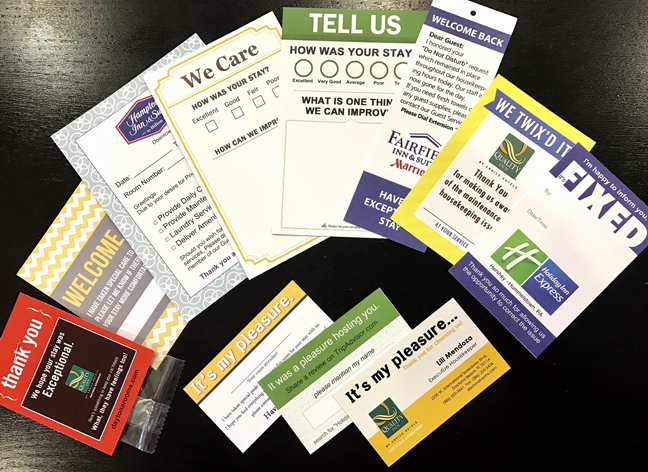 - We Care cards–helps you qualify if guests were happy or not (then you ask for a review)